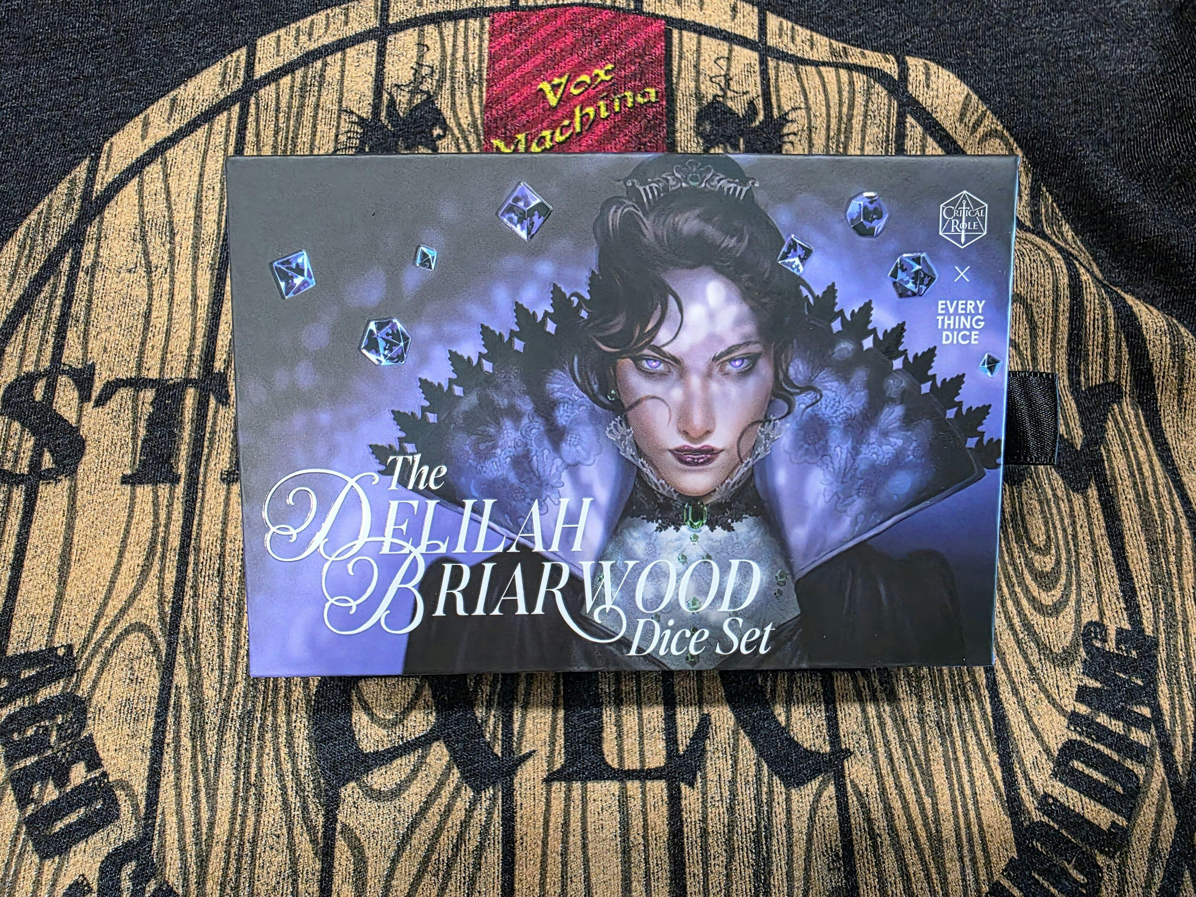 The Delilah Briarwood Dice Set is the seventh set of an exclusive Critical Role collaboration with the amazing artisans of Everything Dice. Please note the exact coloration may vary between both dice and sets.