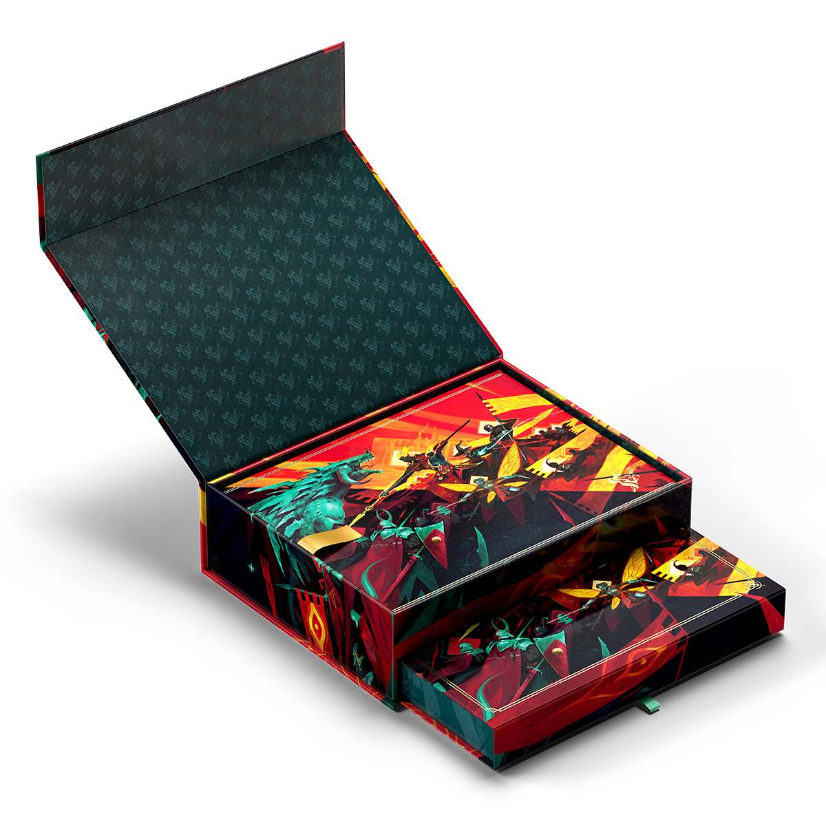 - Store your rulebook and an accessories compartment in a gorgeous gold foil box with a wraparound cover featuring all-new artwork unique to this edition. The accessories compartment holds all your gorgeous cards and goodies, and clasps with a secure magnet.