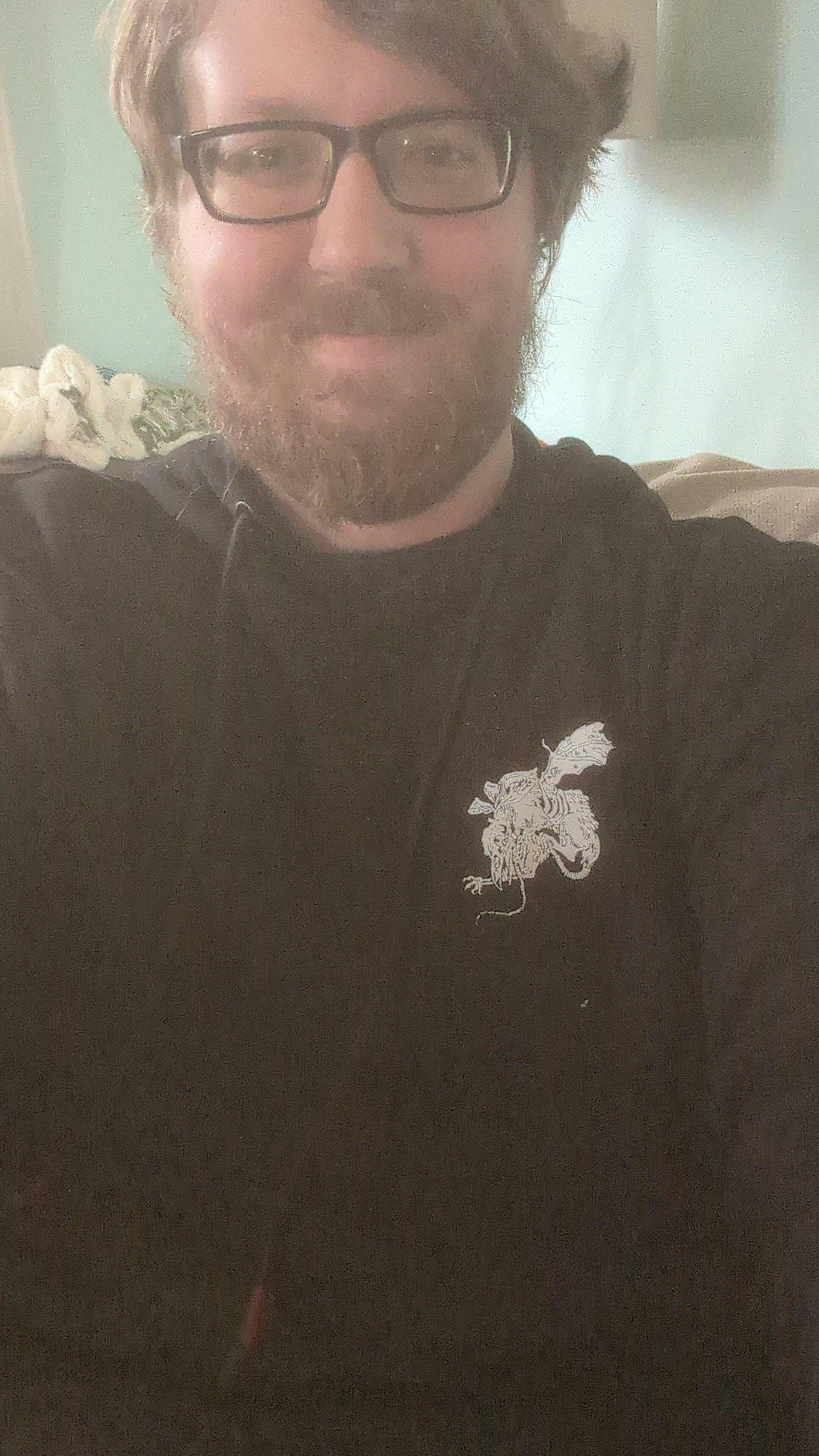 Power your fashion in its most dreadful form with this comfortable hoodie inspired by the undead spellcaster, Laudna. The black unisex pullover features a large, fearfully beautiful profile portrait of the sorceress on the back and a smaller portrait of her familiar, Pâté de Rolo, on the front left chest area. Emblematic of her dark magic, the full hood has a contrasting black and red print inside as well as red and purple threaded color blocks above the custom matte black Critical Role aglets on the drawstrings.